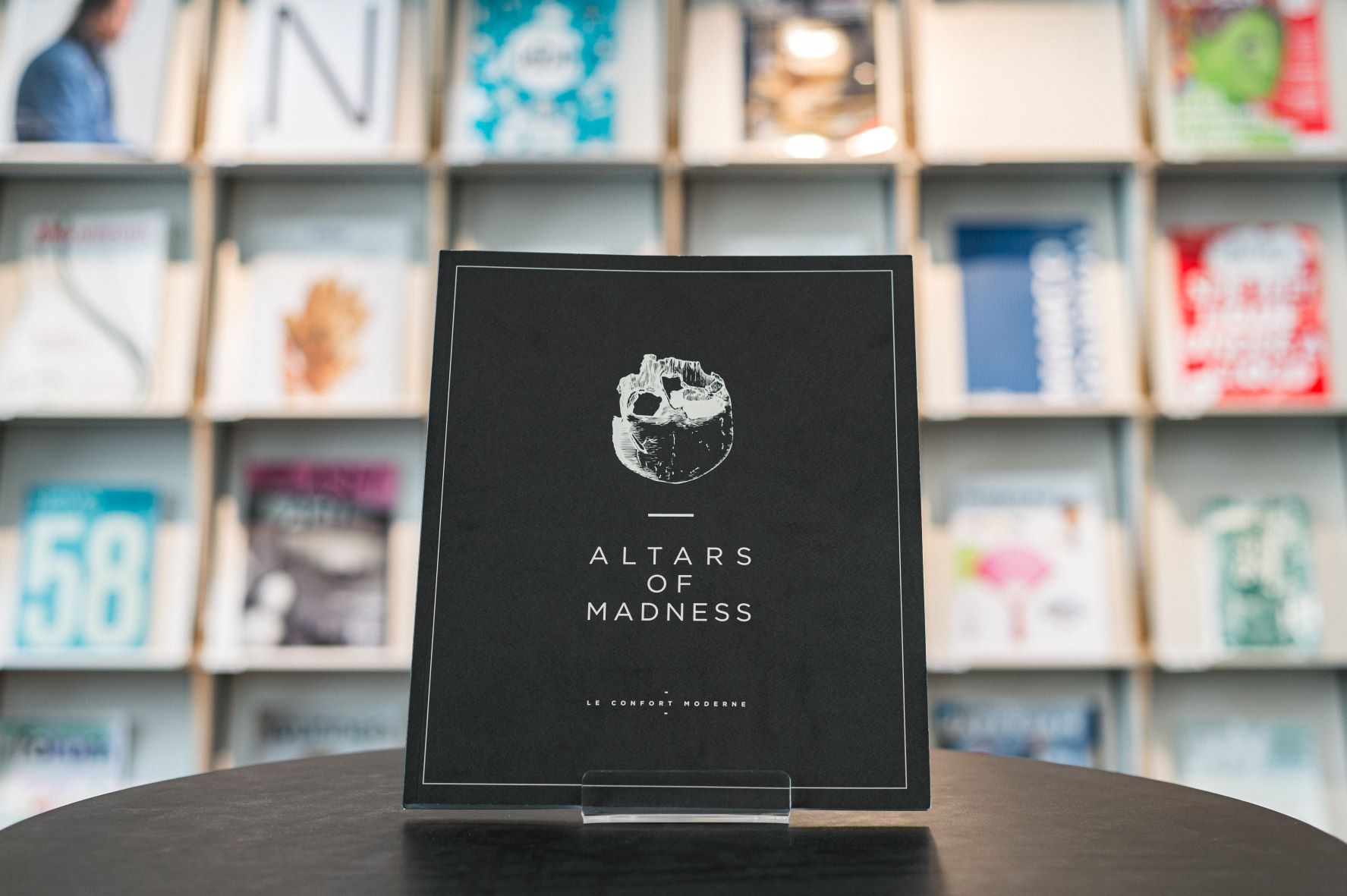 Altars of Madness est un catalogue publié dans le cadre des deux expositions du même titre présentées au Casino Luxembourg (19.05 – 15.09.2013) et au Confort Moderne Poitiers (28.09 – 15.12.2013). La publication consiste en deux volumes explorant les notions d’extrême, de « underground », ainsi que les liens entre art contemporain et metal extrême.