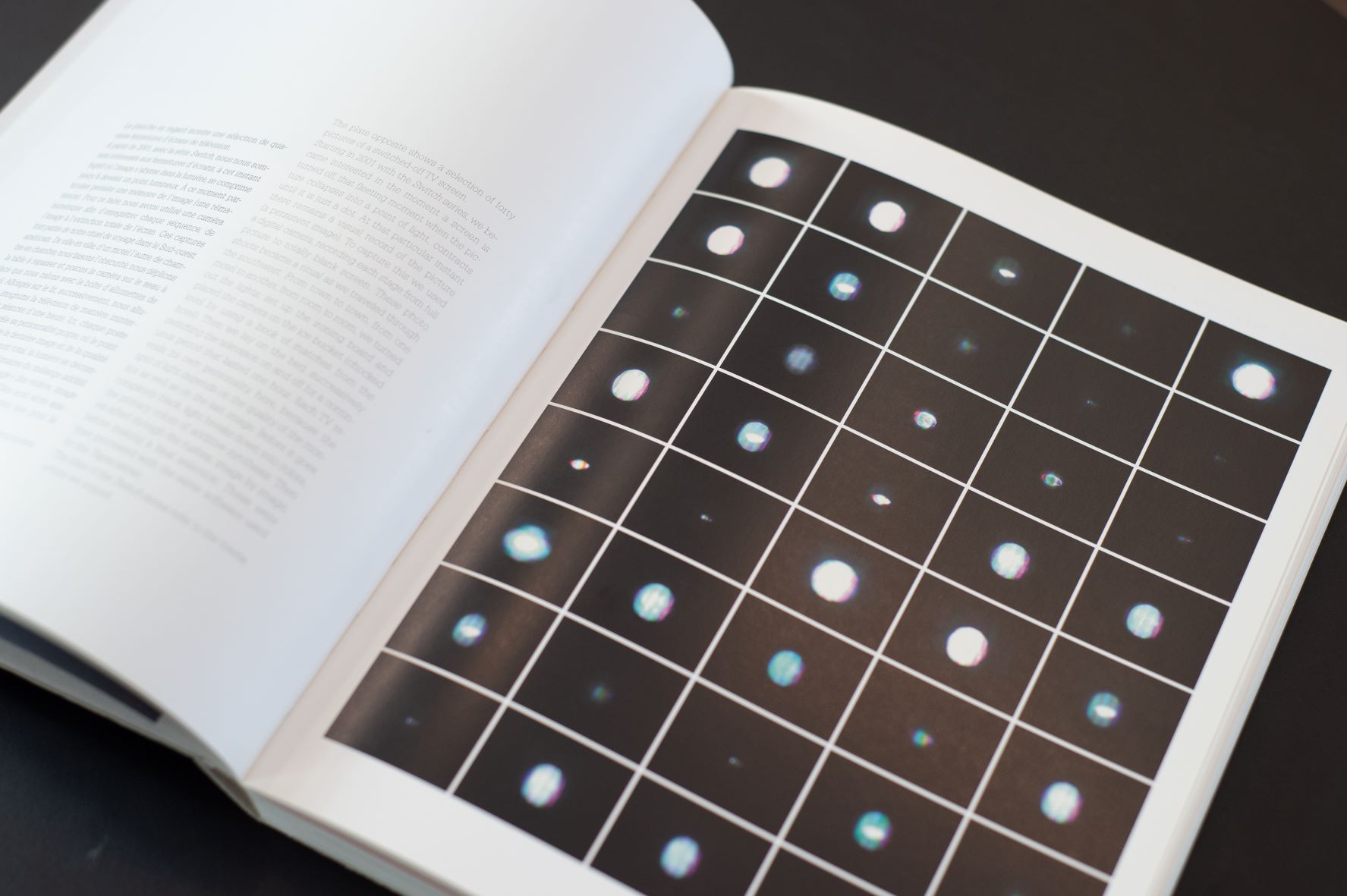 Livre monographique retraçant le travail des artistes depuis les années 1990. Philippe-Alain Michaud passe en revue les principales séries qui constituent le corpus des artistes : ses analyses et ses réflexions sont autant d’études de cas particuliers que de méditations sur la peinture et la représentation en général. De son côté, Jean Louis Schefer nous installe au cœur même de la lumière, à l’origine du visible, pour contempler, guidés par des textes historiques d’illustres savants – Newton et Buffon – le travail de la peinture : un « événement » visuel et poétique, un « monde silencieux et cependant fait de vibrations ».