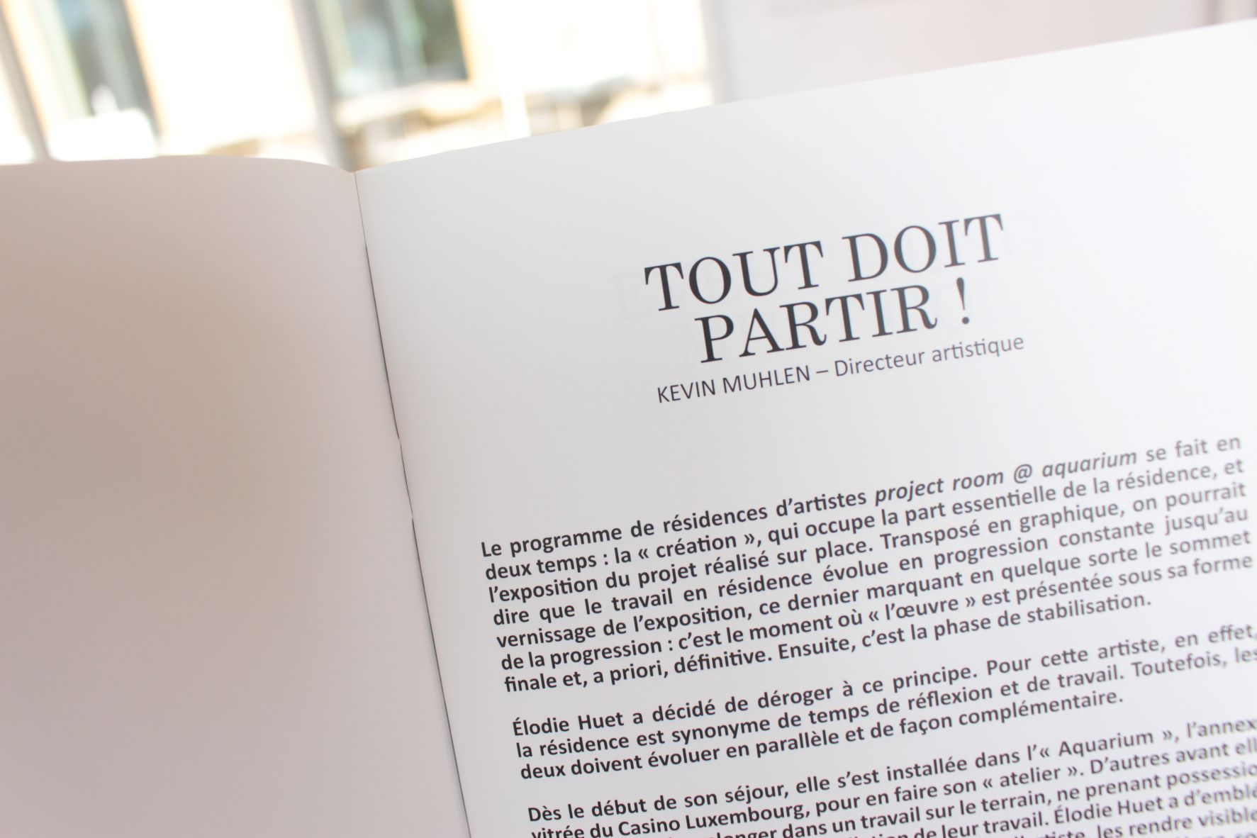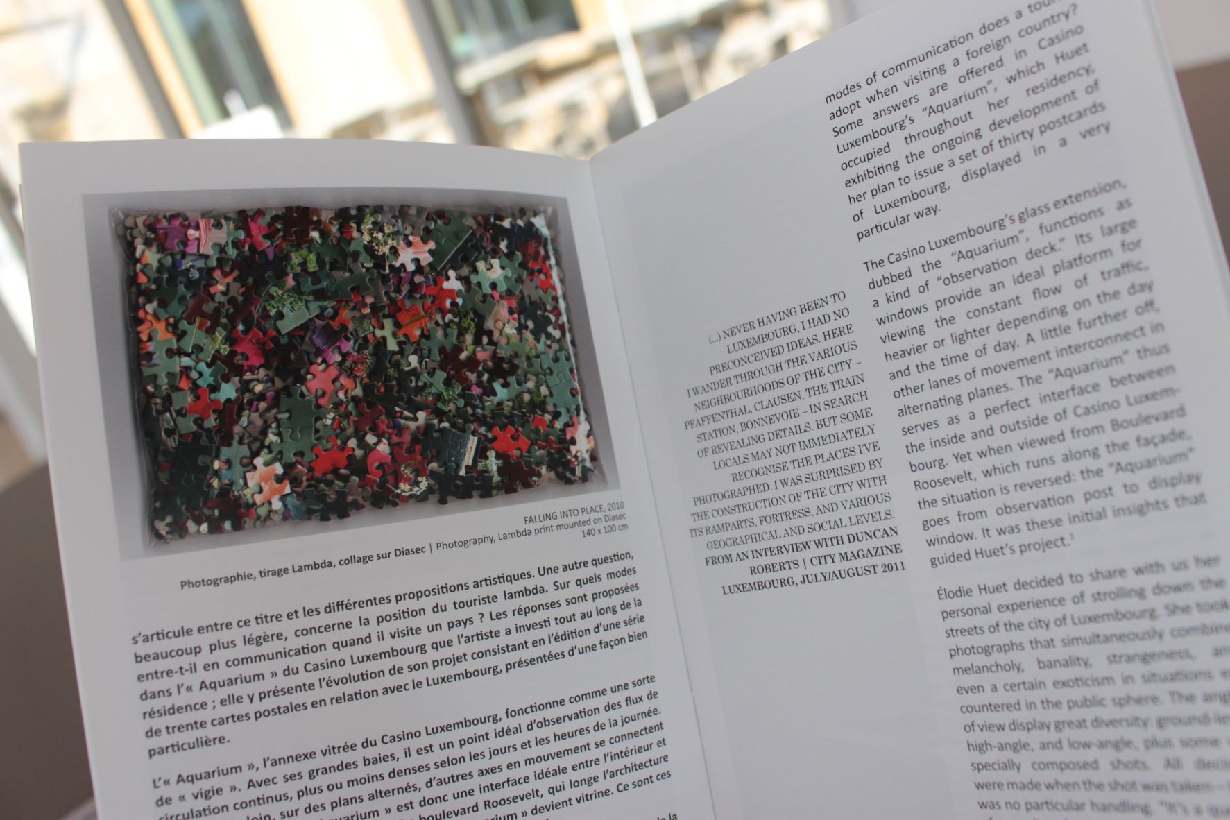 Publication éditée dans le cadre de la résidence d’artiste d’Élodie Huet au Casino Luxembourg. L’artiste française retrace ses déambulations dans les rues de la ville de Luxembourg à travers des photographies de lieux « non touristiques » ou de non-lieux tout simplement. Ces images, imprimées sous forme d’une série de 30 cartes postales destinées à la distribution gratuite, furent entreposées dans des présentoirs en bois pour être emportées par les visiteurs du Casino Luxembourg. Le travail d’Élodie Huet se définit en général par l’assemblage, le démontage et la dispersion et questionne les modes de présentation et de circulation de l’art.