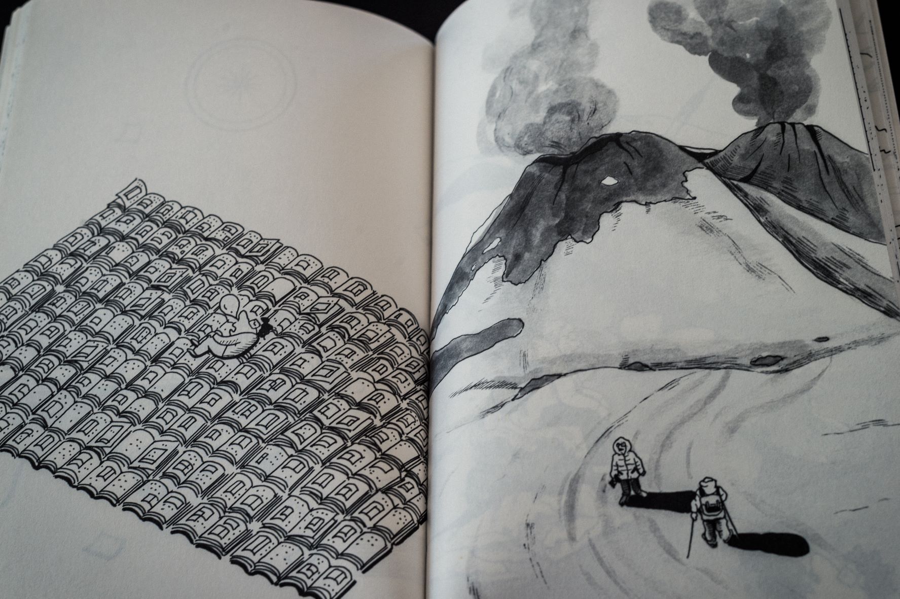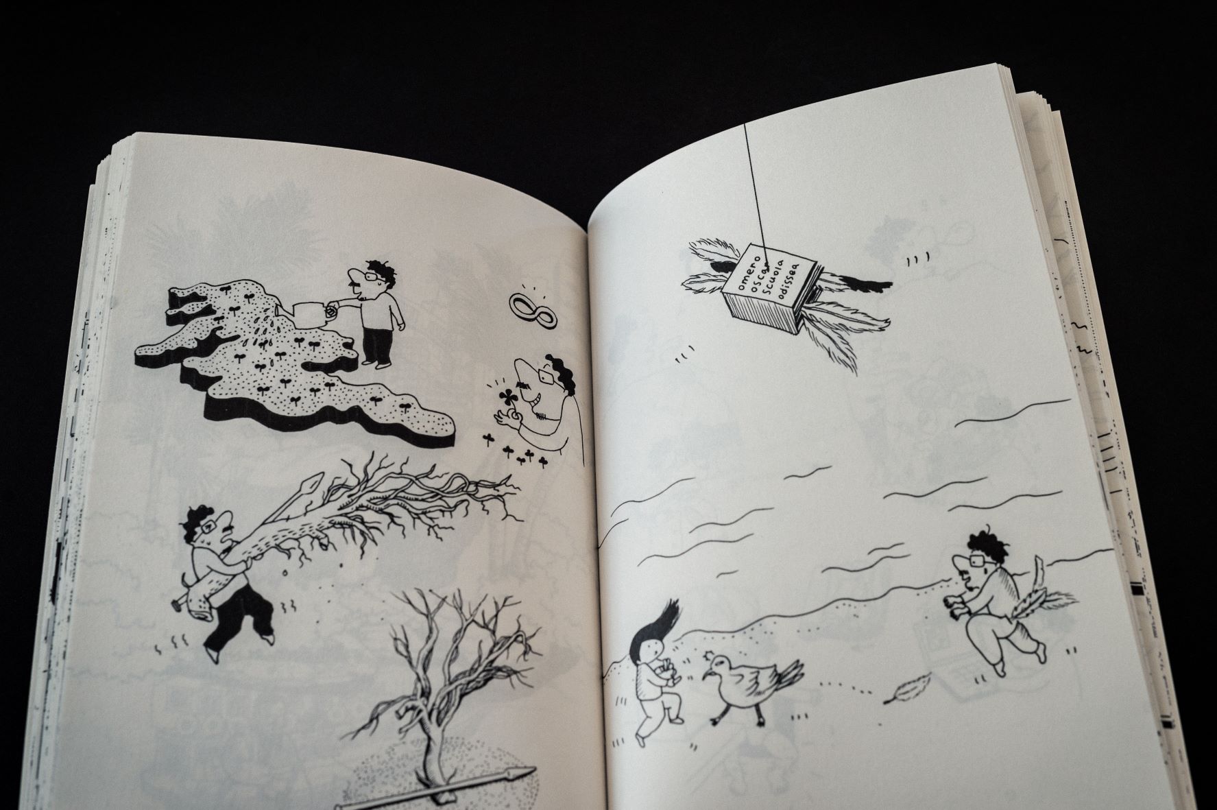 Depuis une quinzaine d’années, l’illustratrice coréenne Keong-A Song retrace les aventures de Mr Godinho – alter ego de l’artiste Marco Godinho en personnage illustré – sillonnant le monde dans le cadre de ses démarches artistiques. Elle imagine de petites histoires drôles et évoque de façon personnelle les thèmes et les sujets qui influencent le travail créatif de l’artiste Marco Godinho au quotidien, ainsi que des anecdotes en relation avec l’élaboration, la production et la mise en place des œuvres.